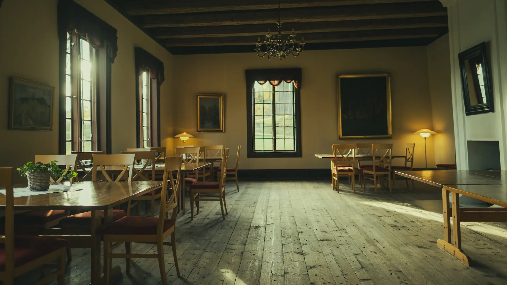 Børterdalen Konferanses spisesal er et samlingspunkt i autentiske omgivelser. Den historiske sjarmen til lokalet er bevart i de tømrede veggene og det brede tregulvet, mens diskret belysning skaper en innbydende atmosfære. Her er det rom for både uformelle møter og formelle middager, alltid med naturen som nærmeste nabo.